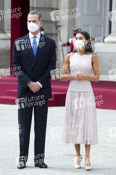 König Felipe VI. von Spanien und Königin Letizia von Spanien beim Empfang des südkoreanischen Präsidenten mit militärischen Ehren im Palacio Real. Madrid, 15.06.2021