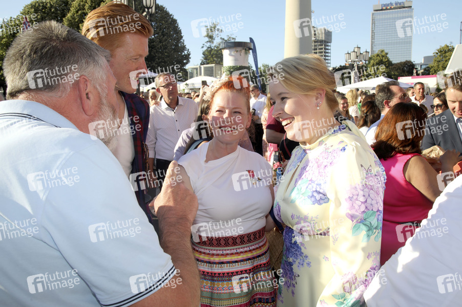 Tobias Staerbo, Enie van de Meiklokjes und Franziska Giffey beim 23. Berliner Hoffest 2025 am Roten Rathaus. Berlin, 01.07.2025