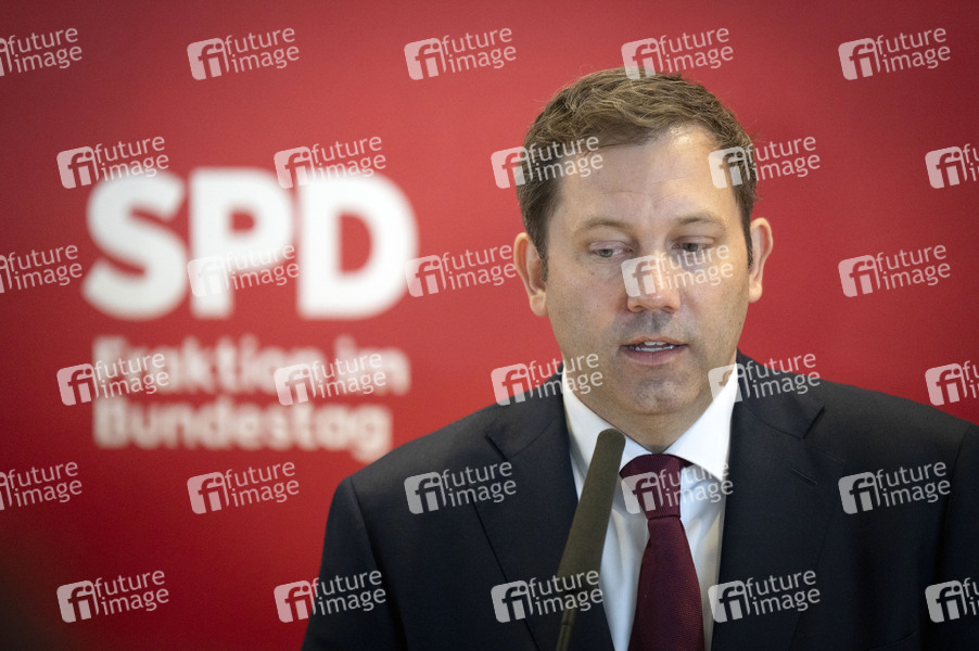Lars Klingbeil beim Pressestatement nach der Fraktionssitzung der SPD-Bundestagsfraktion im Reichstagsgebäude. Berlin, 26.02.2025