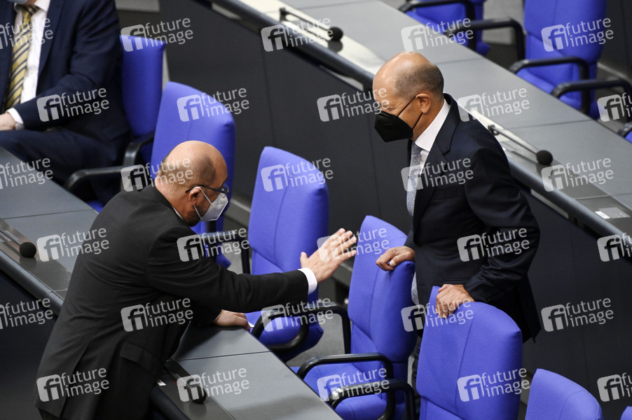Martin Schulz und Olaf Scholz in der 238. Sitzung des Deutschen Bundestages im Reichstagsgebäude. Berlin, 25.08.2021