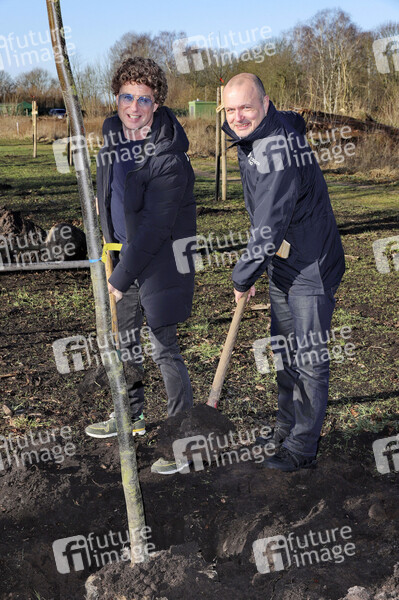 Atze Schröder und Steve Schwenkglenks pflanzen einen Baum im Fame Forrest der Barclaycard Arena. Hamburg, 05.02.2020