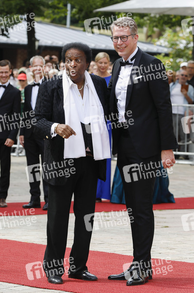 Roberto Blanco und Markus Blume bei der Eröffnung der 112. Richard-Wagner-Festspiele 2024 mit der Neuinszenierung von 'Tristan und Isolde' im Bayreuther Festspielhaus. Bayreuth, 25.07.2024