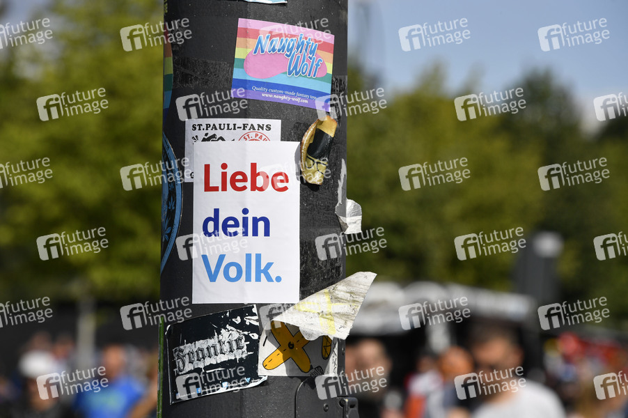 Tausende Menschen demonstrieren gegen die Coronavirus-Auflagen auf der Straße des 17. Juni und am Großen Stern. Außerdem gibt es Gegendemonstrationen. Berlin, 29.08.2020