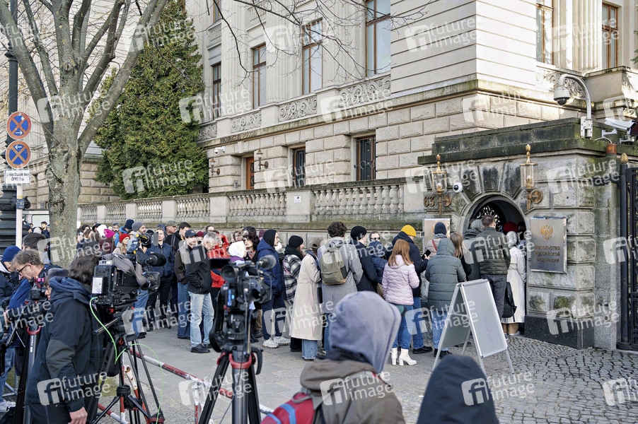 Zeitgeschehen, Schlange, Menschen, Russen, Menschenmenge, Botschaft, Russische Botschaft, Abstimmung, Demo, Demokratie, Demokratiebewegung, Demonstrant, Demonstranten, Demonstration, Demonstrierende, Demos, Konflikt, Konflikte, Kundgebung, Kundgebungen, Militär, Oppositionelle, Oppositionspartei, Oppositionspolitiker, Politik, Präsidentschaftswahl, Protestaktion, Protestdemo, Protestdemonstration, Protestkundgebung, russisch-ukrainischer Krieg, Russland, Solidarität, Solidaritätsbekundung, Solidaritätsdemo, Solidaritätsdemonstration, Solidaritätskundgebung, Ukraine, Ukrainekrieg, Versammlung, Wahlen