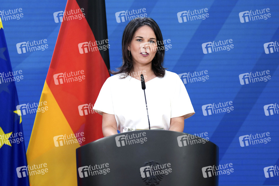 Annalena Baerbock beim Pressestatement bei der ersten Sitzung des in der Gemeinsamen Erklärung vom 25. August 2022 vereinbarten multidimensionalen strategischen Dialogs zwischen Marokko und Deutschland im Auswärtigen Amt. Berlin, 28.06.2024