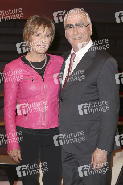 Irene Epple-Waigel mit Ehemann Theo Waigel bei der Aufzeichnung der ZDF-Talkshow 'Markus Lanz' im Fernsehmacher Studio auf dem Phoenixhof. Hamburg, 16.04.2019