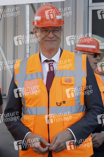 Patrick Schnieder bei der Vorstellung der ersten Güterzuglokomotive, die für den automatisierten Streckenbetrieb umgerüstet wurde im DB Cargo-Werk Köln-Gremberg. Köln, 04.07.2025
