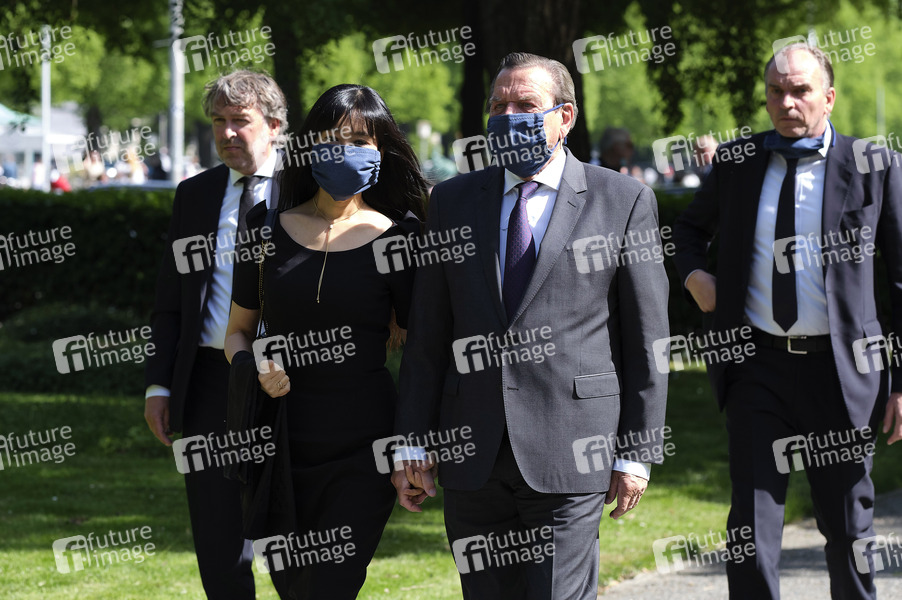 Gerhard Schröder mit Ehefrau Schröder-Kim So-yeon bei der Gedenkfeier zum Tag der Befreiung - 75. Jahrestag der Kapitulation des Nationalsozialistischen Deutschlands auf dem Ehrenfriedhof am Maschsee-Nordufer. Hannover, 08.05.2020