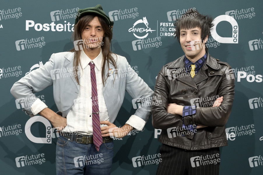 Lucio Corsi und Tommaso Ottomano beim Photocall zum Konzertfilm 'La Chitarra Nella Roccia - Lucio Corsi dal Vivo all'Abbazia di San Galgano' auf dem 20. Internationalen Filmfestival von Rom / Festa del Cinema di Roma 2025 im Auditorium Parco della Musica. Rom, 25.10.2025