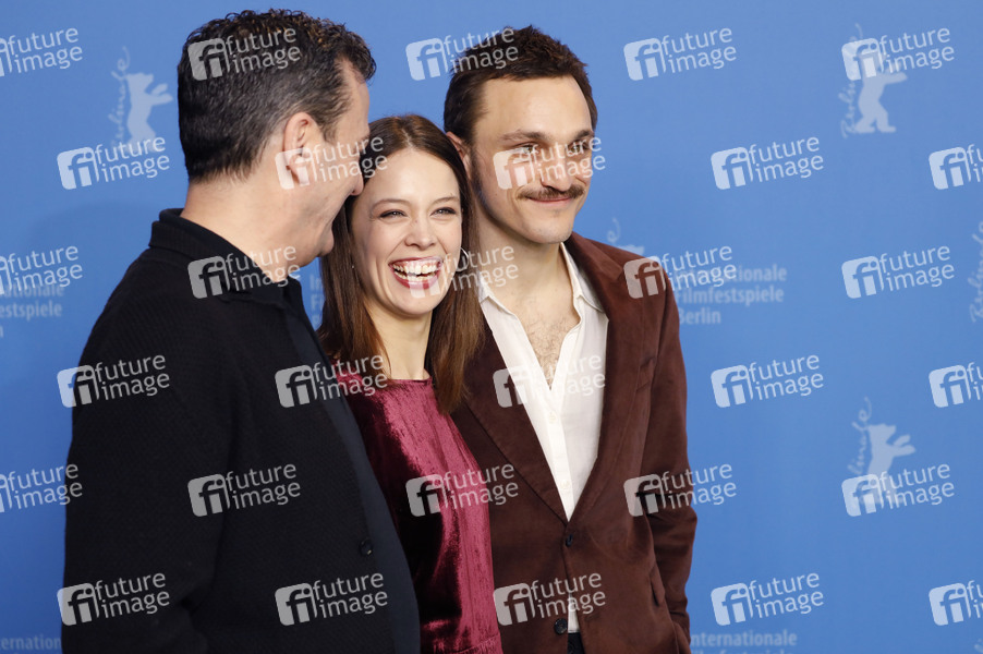 Christian Petzold, Paula Beer und Franz Rogowski beim Photocall zu 'Undine' auf der Berlinale 2020 / 70. Internationale Filmfestspiele Berlin im Hotel Grand Hyatt. Berlin, 23.02.2020