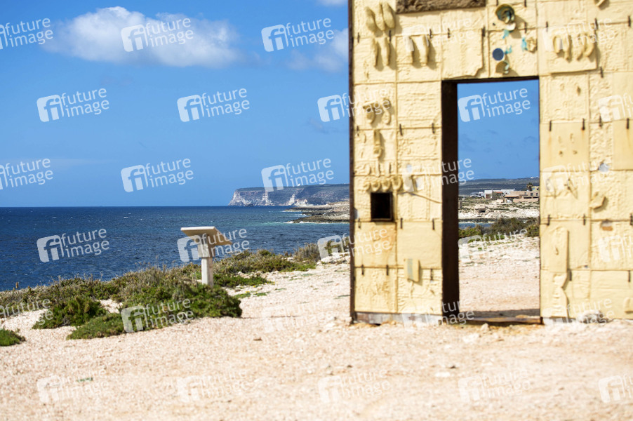 Das Gate of Europe auf Lampedusa (Italien). Die Kunstinstallation von Mimmo Paladino soll ein Mahnmal für die Ertrunkenen Flüchtlinge im Mittelmeer sein. Lampedusa, 05.03.2020
