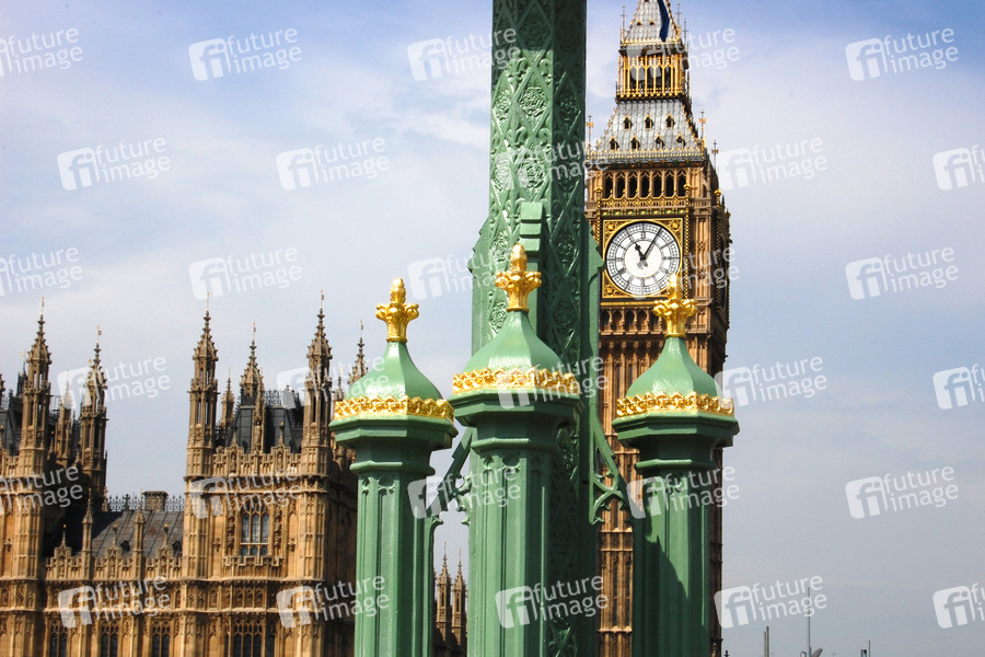 Big Ben bezeichnet die mit 13.5 t Gewicht schwerste der fünf Glocken des berühmten Uhrturms am Palace of Westminster, heute bezeichnet man gemeinhin den ganzen Turm als Big Ben, erbaut 1858 von Sir Benjamin Hall, Höhe 96.3 Meter, Durchmesser der vier Zifferblätter beträgt acht Meter, die Minutenzeiger haben eine Länge von 4.3 Metern, die Stundenzeiger messen 2.7 Meter, die größte Uhr Großbritanniens, der Uhrturm ist eines der bekanntesten Wahrzeichen der Stadt London