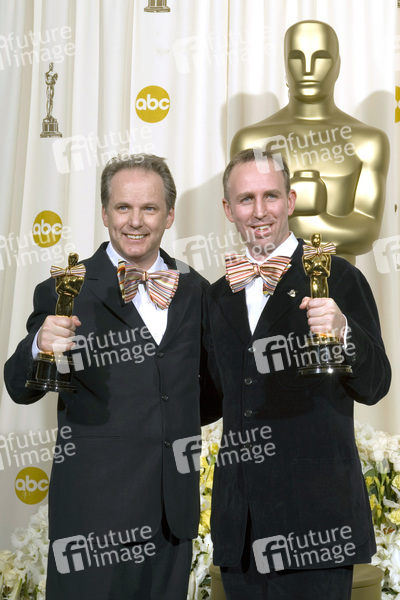 Nick Park und Steve Box mit dem Oscar für den besten Aninationsfilm 'Wallace & Gromit - Auf der Jagd nach dem Riesenkaninchen / Wallace & Gromit in the Curse of the Were-Rabbit' beim Preisträger-Photocall im Press Room der Oscar Verleihung 2006 / 78th Annual Academy Awards im Kodak Theatre. Los Angeles, 05.03.2006