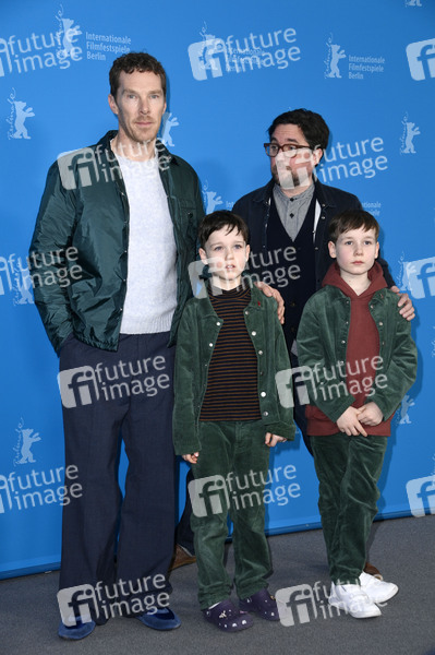 Benedict Cumberbatch, Richard Boxall, Dylan Southern und Henry Boxall beim Photocall zum Kinofilm 'The Thing with Feathers' auf der Berlinale 2025 / 75. Internationale Filmfestspiele Berlin im Hotel Grand Hyatt. Berlin, 18.02.2025