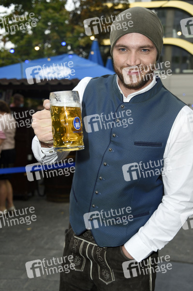 Patrick Heinrich beim Fassanstich bei der 9. Hofbräu Berlin Wiesn im Hofbräu Wirtshaus Berlin. Berlin, 19.09.2020