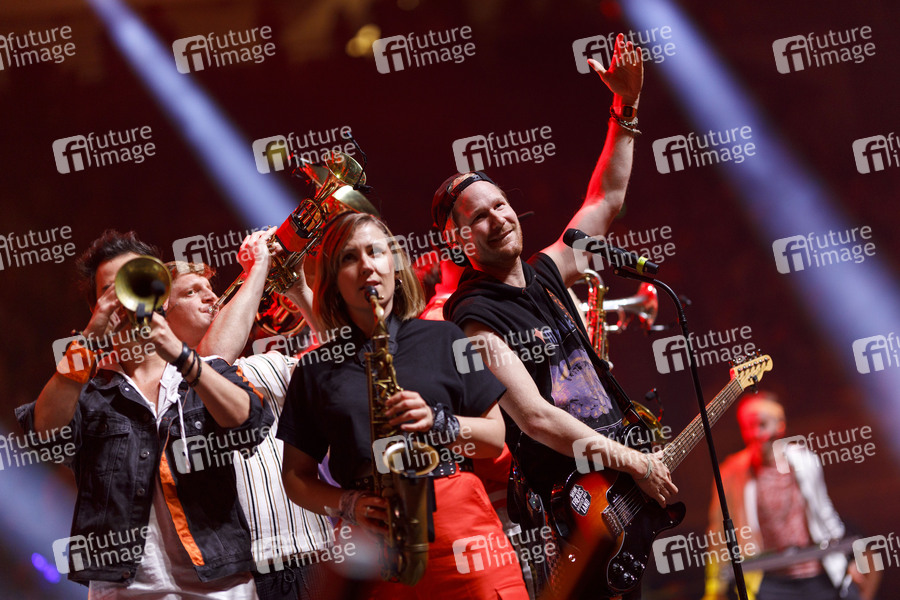Jojo Berger mit der Band Querbeat bei der Lachenden Kölnarena 2020 in der Lanxess Arena. Köln, 24.01.2020