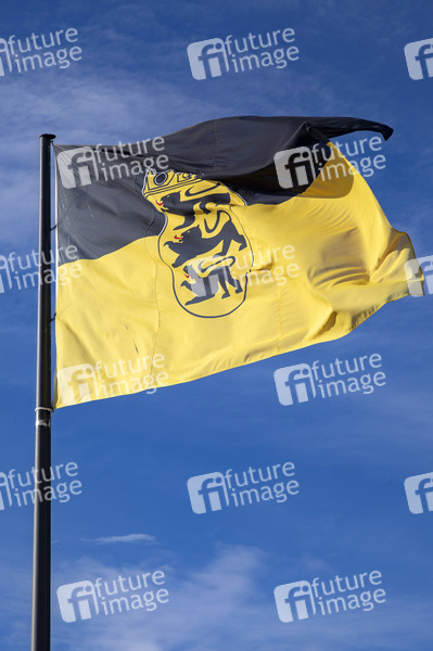 Flagge des Bundeslandes Baden-Württemberg mit Wappen. Koblenz, 17.11.2020