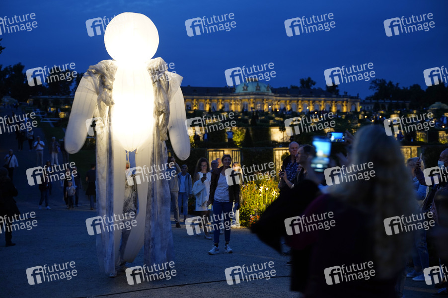 Company Quidam's bei der Potsdamer Schlössernacht 2021 im Schlosspark Sanssouci. Potsdam, 21.08.2021