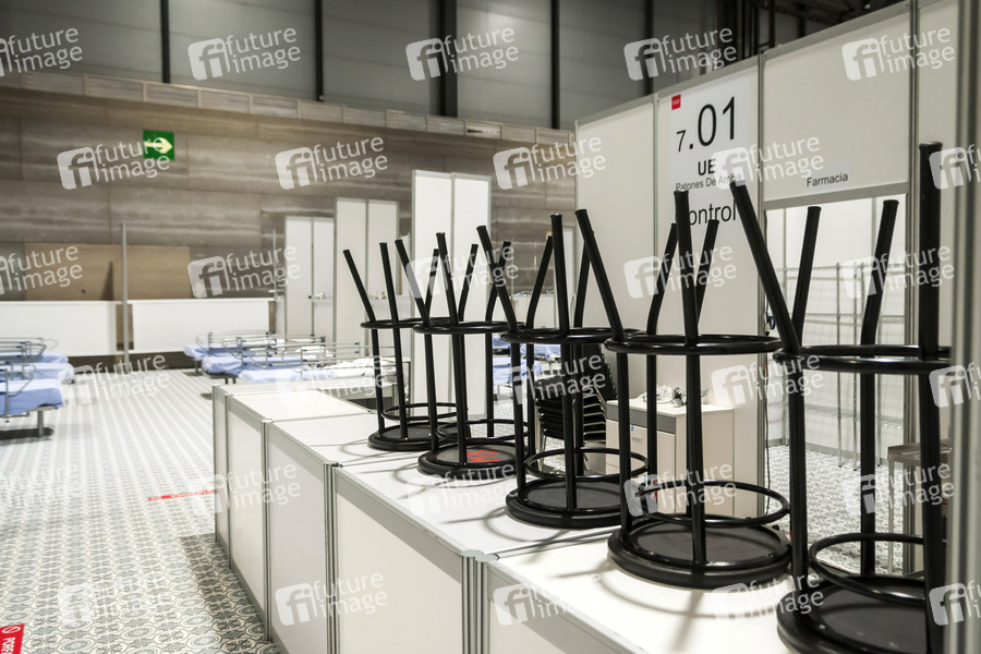 Hospital Covid-19 IFEMA, Krankenhaus, Hospital, Feldkrankenhaus, Medizin, Behelfskrankenhaus, Coronakrise, Corona-Krise, Kontaktverbot, Abstandsregel, Versammlungsverbot, Seuchenschutz, Quarantäne, Quarantänemaßnahme, Ausgangssperre, Mindestabstand, Social Distancing, Kontakt verboten, Ausgangsbeschränkung, Coronaviren, Virus, Viren, Corona, Covid-19, Sars-CoV-2, Coronavirus, Coronaviren, Corona-Virus, Corona-Viren, Ansteckungsgefahr, Epidemie, Pandemie, Infektion, Infektionen, Corona-Angst, Ansteckungsangst, Seuche, anstecken, Krankheit, Vorbeugung, Prävention, schützen, Schutz, Ausnahmezustand, Risiko, Risikobewertungen, Maßnahmen, Coronamaßnahmen, Corona-Infektion, Corona-Infektionen, Corona-Schutz, menschenleer, #stay home, #stayhome, Symbolfoto, Symbolbild
