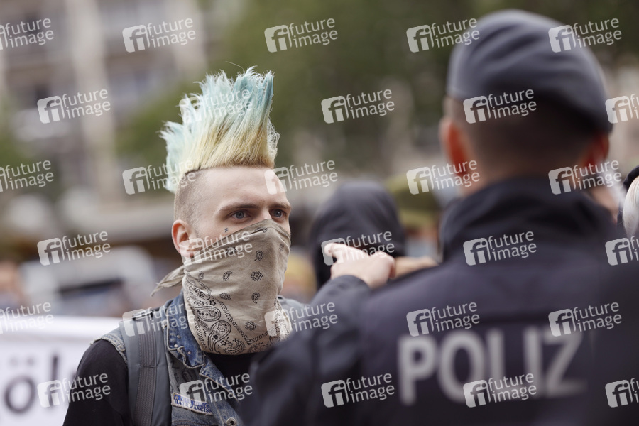 Antifa, Linksautonome, Polizei, Polizeieinsatz, Polizeikräfte, Polizisten, Gewaltmonopol, Staatsgewalt, Corona-Demo, Corona-Demos, Corona-Protest, Corona-Proteste, Demo, Demonstration, Demonstranten, Protest, Kundgebung, Gegendemo, Corona-Demo, Corona, Sars-CoV-2, Covid-19, Coronavirus, Coronaviren, Corona-Virus, Coronakrise, Corona-Krise, Corona-Pandemie, Coronamaßnahmen, Abstandhalten, Abstandsregel, Ausnahmesituation, Kontaktverbot, Maskenpflicht, Mindestabstand, Proteste, Grundrechte, Einschränkungen, Corona-Maßnahmen, Corona-Maßnahme, Versammlungsrecht, Versammlungsverbot, Kontaktverbot