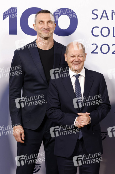 Wladimir Klitschko und Olaf Scholz bei der Verleihung des M100 Media Award 2022 für das ukrainische Volk in der Orangerie Sanssouci. Potsdam, 15.09.2022