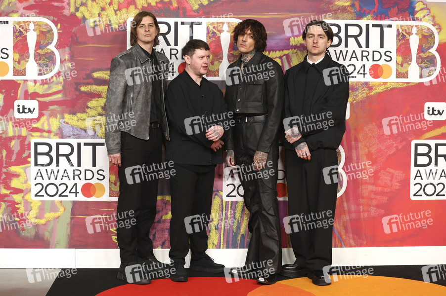 Matt Kean, Lee Malia, Oliver Sykes und Matt Nicholls von Bring Me the Horizon bei der Verleihung der 44. BRIT Awards 2024 in der O2 Arena. London, 02.03.2024