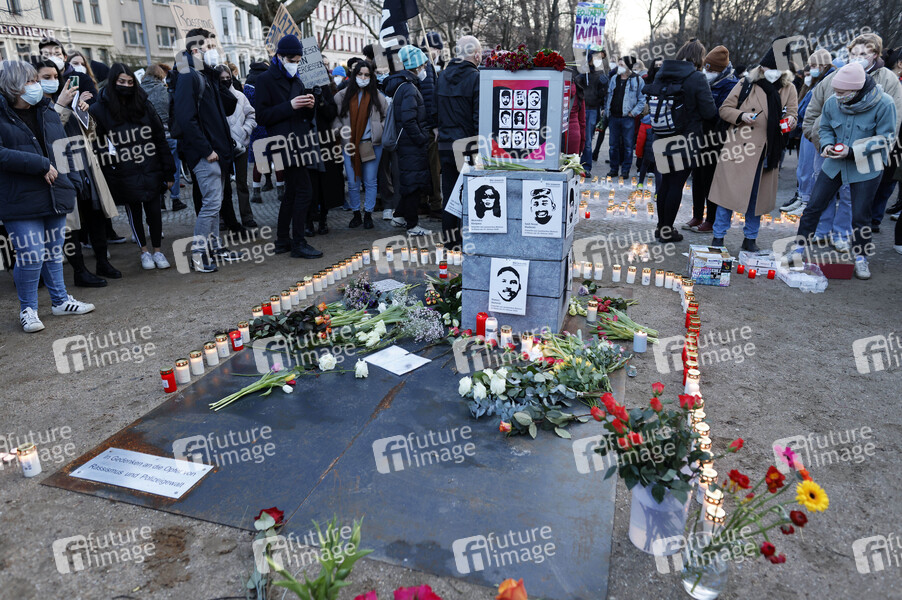 Gedenkveranstaltung zum ersten Jahrestag des rassistischen Anschlags in Hanau am Oranienplatz. Vor einem Jahr tötete ein Rechtsextremist in Hanau zehn Menschen und sich selbst. Berlin, 19.02.2021