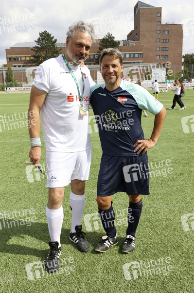 Thomas Mir und Patrick Bach beim Benefiz-Fußballspiel 'Kicken mit Herz' 2023 zu Gunsten des Herzzentrums des UKE im Stadiun Hoheluft. Hamburg, 03.09.2023