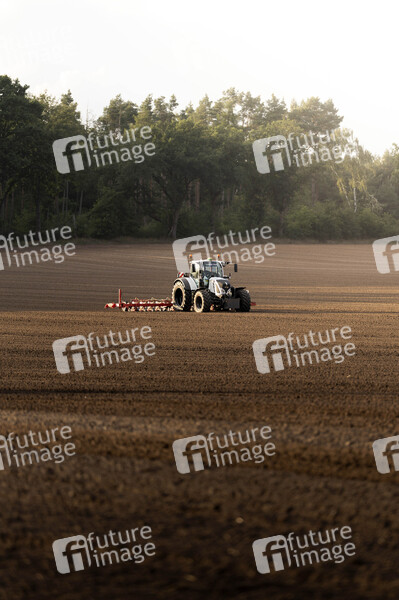 Traktor, Landwirtschaft, Feldarbeit, Acker, Bauer, Ernte, Bodenbearbeitung, Saat, Erntemaschine, Landwirt, Landtechnik, Agrarwirtschaft, Anhänger, Maschine, Natur, Landschaft, Landarbeit, Getreidefeld, Arbeitsalltag, Symbolbild, Themenbild