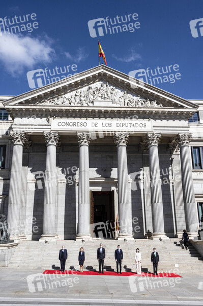 Jose Gonzalez Rivas, Meritxel Batet, König Felipe von Spanien, Pedro Sanchez, Pilar Llop und Carlos Lesmes bei der Feier zum 40. Jahrestag vom 23-F, dem vereitelten Putsch vom 23. Februar 1981, im Congreso de los Diputados. Madrid, 23.02.2021