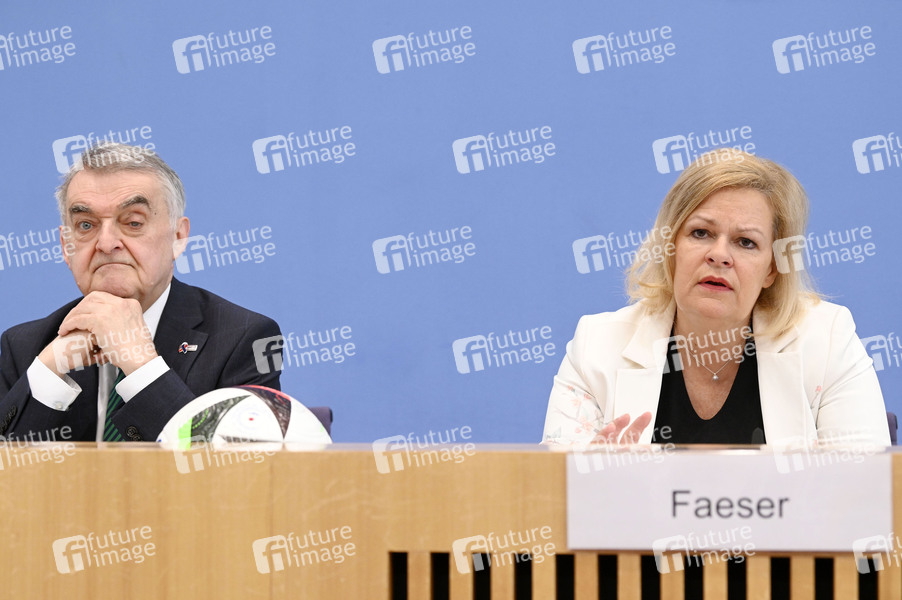 Herbert Reul und Nancy Faeser bei der Bundespressekonferenz 10 Tage vor der EM: Vorbereitung von Bund und Ländern für Sicherheit und Zusammenhalt im Haus der Bundespressekonferenz. Berlin, 04.06.2024