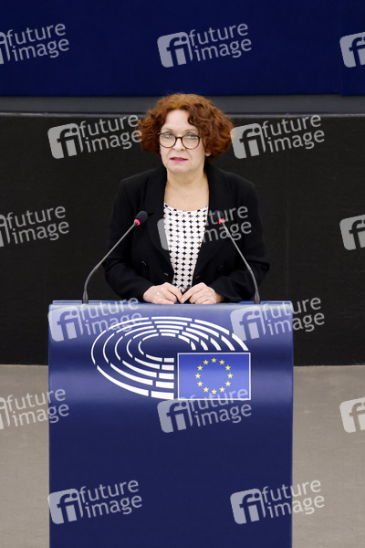 Europäisches Parlament, Plenum, Plenartagung, Plenardebatte, Plenarsitzung, Debatte, Rede, Politik, Strasbourg, Strassburg, Europaparlament, Europa-Politik, EU-Abgeordnete, EU-Parlament, EP, Parlament der Europäischen Union, European Parliament, European Union, Parlamentum Europaeum, MdEP, Mitglied des Europäischen Parlaments, Politikerin, Polen, Elżbieta Kruk, Prawo i Sprawiedliwość, Fraktion der Europäischen Konservativen und Reformer, EKR