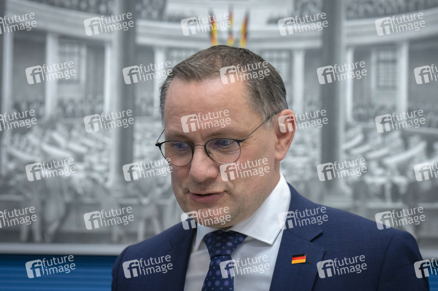 Tino Chrupalla beim Pressestatement zur Fraktionssitzung der AfD-Bundestagsfraktion im Reichstagsgebäude. Berlin, 10.02.2025