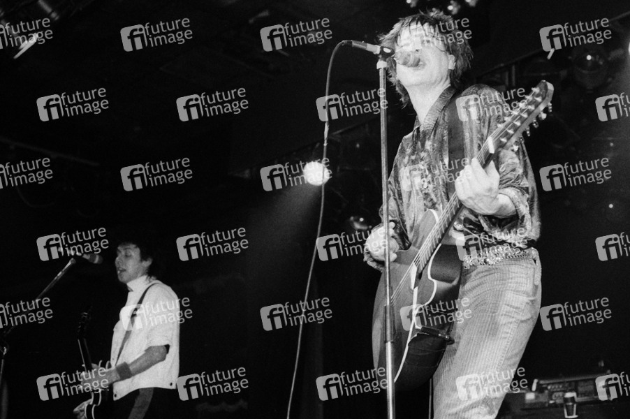 Eddie MacDonald und Dave Sharp von The Alarm live im Hammersmith Palais. London, 13.05.1985