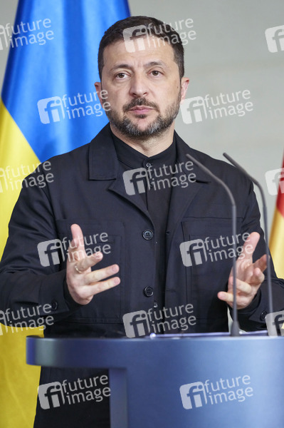 Wolodymyr Selenskyj beim Empfang des Präsidenten der Ukraine mit militärischen Ehren und zu einem gemeinsamen Gespräch mit dem Bundeskanzler mit anschließendem Pressestatement im Bundeskanzleramt. Berlin, 28.05.2025