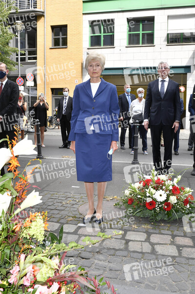 Friede Springer bei der Kranzniederlegung zum Jahrestag des Baus der Berliner Mauer an der Peter-Fechter-Gedenkstele in der Zimmerstraße. Berlin, 13.08.2020