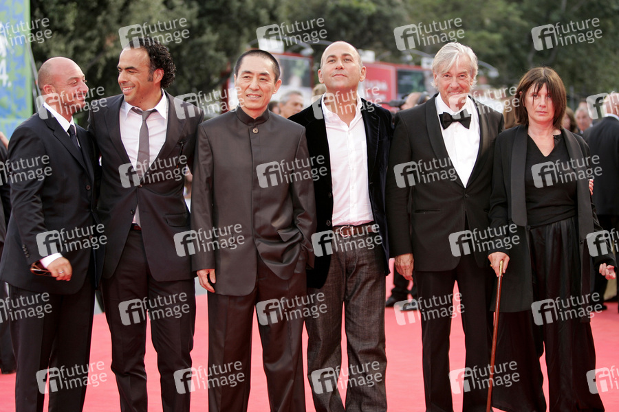Emanuele Crialese, Alejandro Gonzalez Inarritu, Zhang Yimou, Ferzan Ozpetek, Paul Verhoeven und Catherine Breillat bei der Festivaleröffnung mit der Premiere des Kinofilms 'Atonement / Abbitte' auf der Biennale di Venezia 2007 / 64. Internationale Filmfestspiele von Venedig im Palazzo del Cinema. Venedig, 29.08.2007