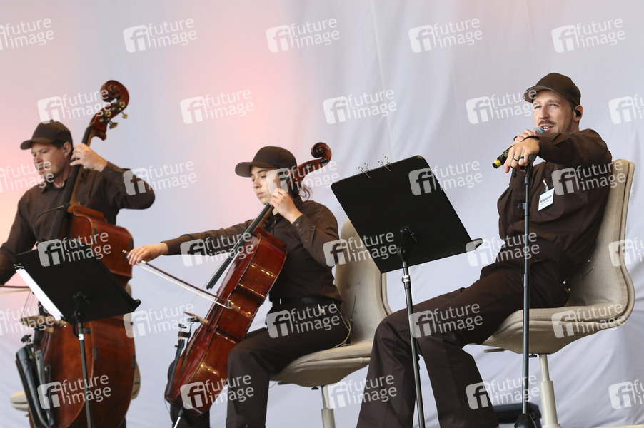 Alligatoah live bei einem Konzert der 'Akkordarbeit & das Gregor Schwellenbach Streichquartett'-Tour beim Vor Deiner Tür Open Air im Cruise Center Steinwerder. Hamburg, 29.07.2021.