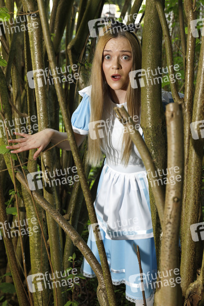 GEEK ART - Bodypainting and Transformaking: Alice im Wunderland Photoshooting mit Melina als Alice im Czarnecki-Garten. Hameln, 18.05.2023 - Ein Projekt des Fotografen Tschiponnique Skupin und des Bodypainters und Transformakers Enrico Lein