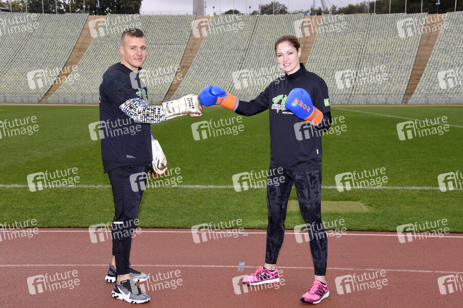 Alem Begic und Marie Lang beim Fototermin zur sportichen '#WocheChallenge' im Olympiastation München. Unter dem Motto 'Wir können was bewegen!' ruft die Welthungerhilfe zu dieser Challenge auf und bittet um Spenden für eine Welt ohne Hunger. München, 13.10.2020