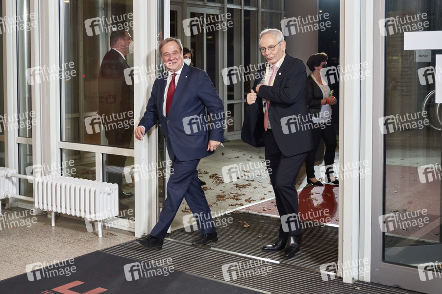 Armin Laschet und Michael Vassiliadis beim 7. Ordentlichen Gewerkschaftskongress der IG Bergbau, Chemie, Energie im Hannover Congress Centrum. Hannover, 27.10.2021