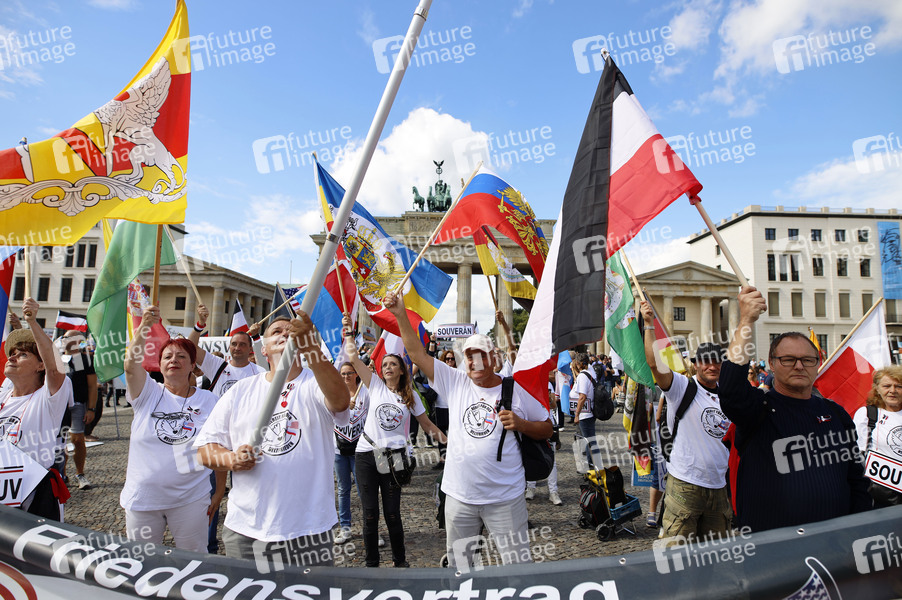 Demonstranten verschiedener Gruppierungen wie etwa der Initiative Querdenken 711 protestierten mit einer Großdemonstration in Berlin gegen die bestehenden Maßnahmen zur Eindämmung der Corona-Pandemie. Wegen Nichteinhaltung der polizeilichen Auflagen wurde die Demonstration durch die Polizei beendet. Es gab Rangeleien und Festnahmen. Berlin, 29.08.2020