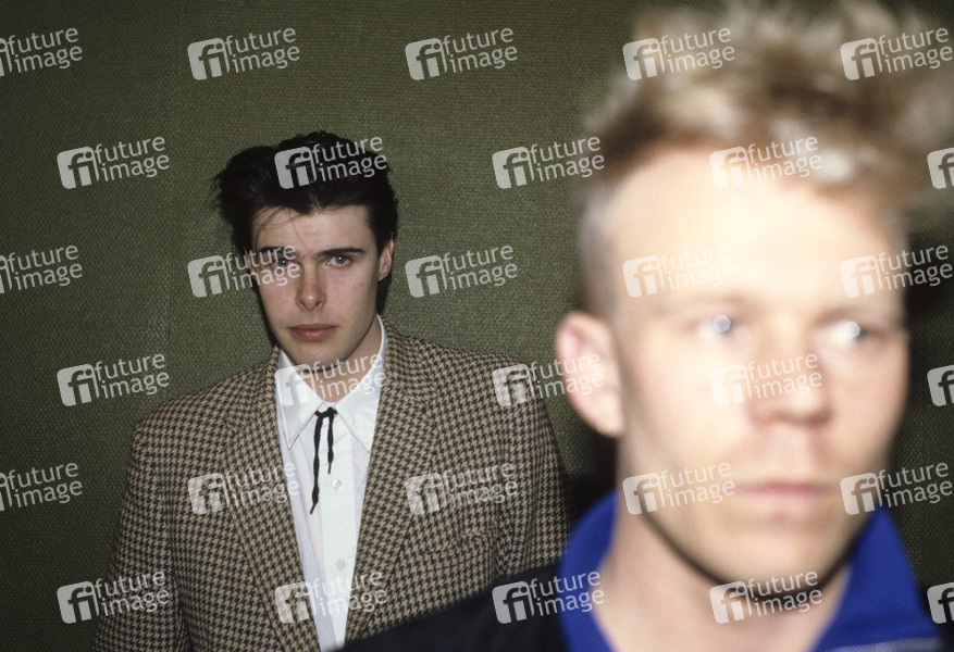 Paul Quinn und Vince Clark bei einem Photoshooting bei Mute Records. London, 14.06.1985
