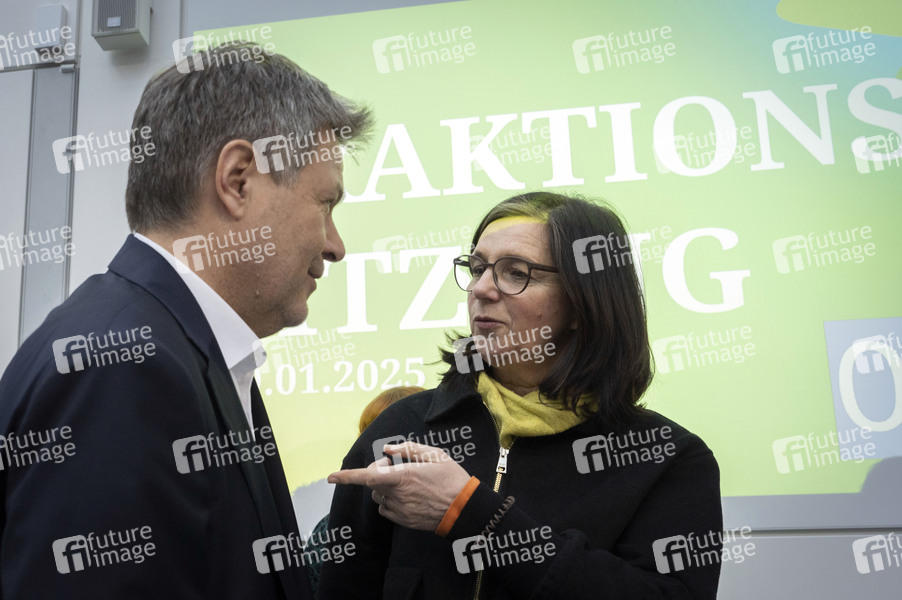 Robert Habeck und Katrin Göring-Eckardt bei der Fraktionssitzung der Bündnis 90/Die Grünen-Bundestagsfraktion im Reichstagsgebäude. Berlin, 10.02.2025