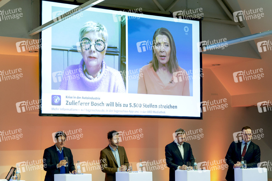 Karl Lauterbach, Felix Banszak, Christian Lindner und Jens Spahn beim Wahlforum Köln zur Bundestagswahl 2025 in der Alten Schalterhalle der IHK Köln. Köln, 19.02.2025