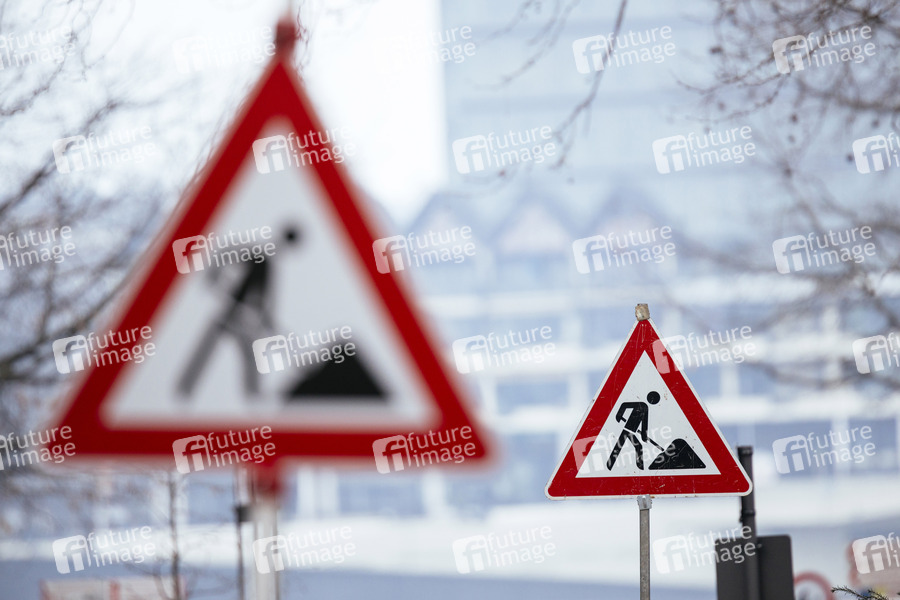 Baustellenschilder weisen auf Bauarbeiten in der Altstadt hin (Themenbild, Symbolbild) Köln, 09.03.2021