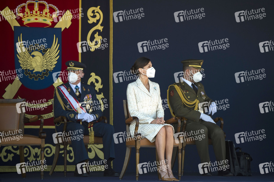 Königin Letizia von Spanien bei der Zeremonie der Übergabe der Nationalflagge an die ACAVIET (Luftfahrtakademie der Armee) in der Helipuerto Base Coronel Mate. Colmenar Viejo, 07.05.2021