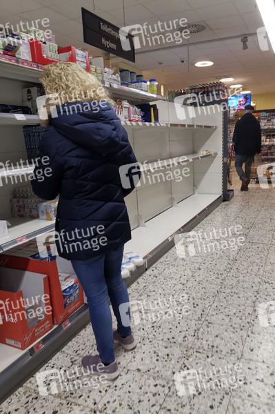 Einkaufen, Einschränkungen, Einzelhandel, Essen und Trinken, Folgen, Hamsteinkauf, Hamstereinkäufe, Hamsterkäufe, hamstern, Handel, Lebenmittelvorräte, Lebensmittel, Lebensmittelhandel, Lebensmittelversorgung, Lebensmittelvorrat, Lebensmittelvorräte, leer, leere, Lieferengpass, Mangel, Markt, Märkte, Nahrungsmittel, Panik, Panikkauf, Panikkäufe, Versorgung, Versorgungsengpass, Vorrat, Vorräte, Wirtschaft, Virus, Viren, Corona, Sars-CoV-2, Covid-19, Coronavirus, Coronaviren, Corona-Virus, Corona-Viren, Ansteckung, Ansteckungsgefahr, Epidemie, Pandemie, Infektion, Angst, Corona-Angst, Corona-Krise, Corona-Crisis, Symbolbild, Symbolfoto