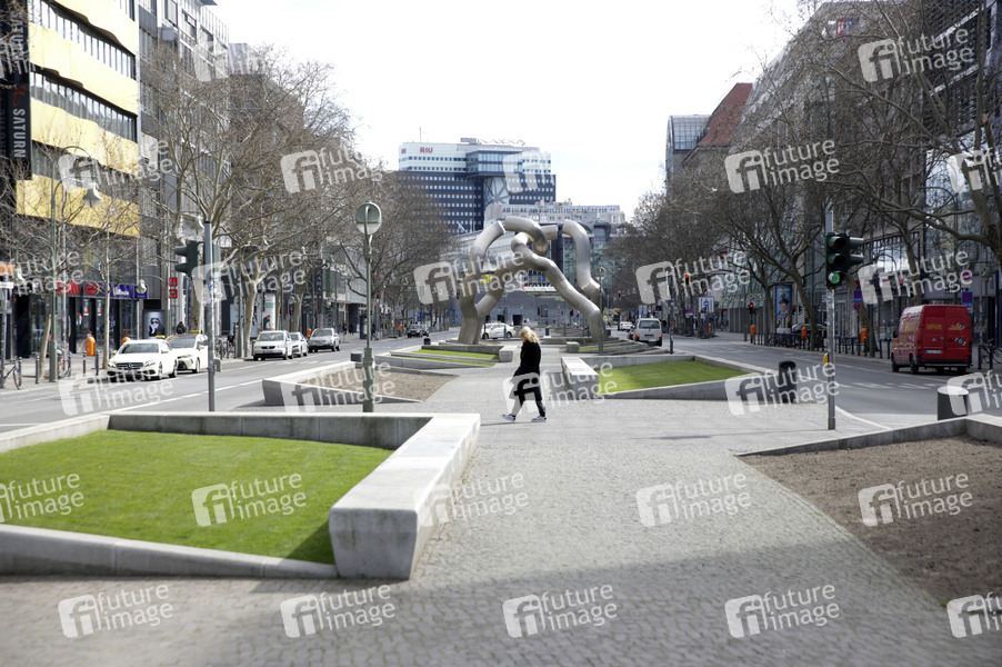 Der fast menschenleere Kurfürstendamm.. Die meisten Berliner halten sich offensichtlich an die Empfehlungen und Maßnahmen der Bundesregierung zur Bekämpfung der Corona-Epidemie. Berlin, 21.03.2020