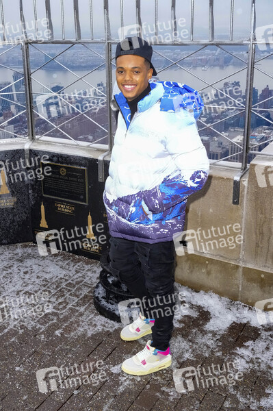 Jabari Banks beim Photocall zur Peacock TV-Serie 'Bel-Air' auf dem Empire State Building. New York, 25.02.2022